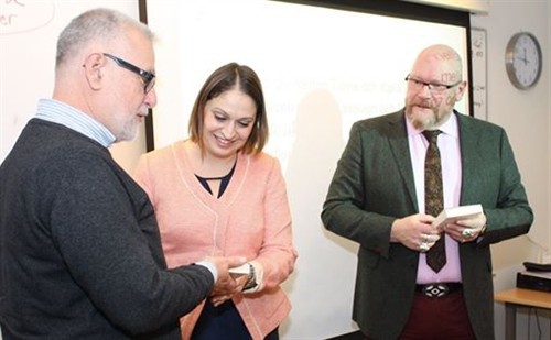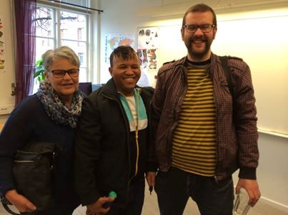Historikern Martin Ericsson höll en superintressant föreläsning om "Jönköpings kommun och resandefolket - en historia om rasism och diskriminering". På bilden ser vi Martin Ericsson tillsammans med kursdeltagarna Margareta Åkesson-Lindberg och Jonathan Rodriguez.